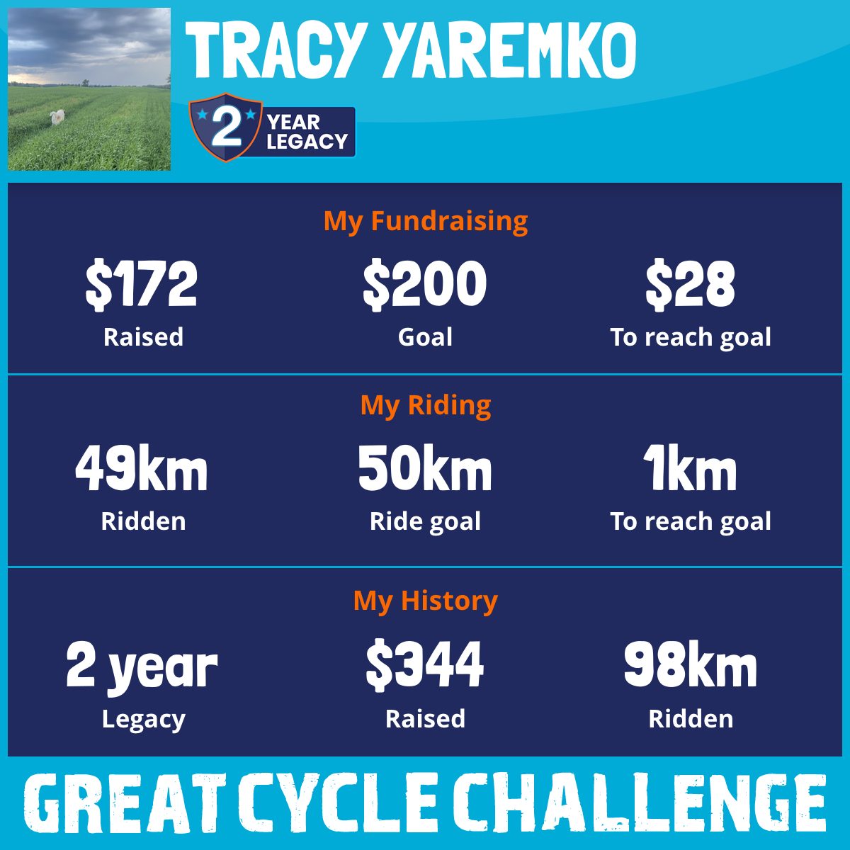 49 km Ridden$172 Raised2026