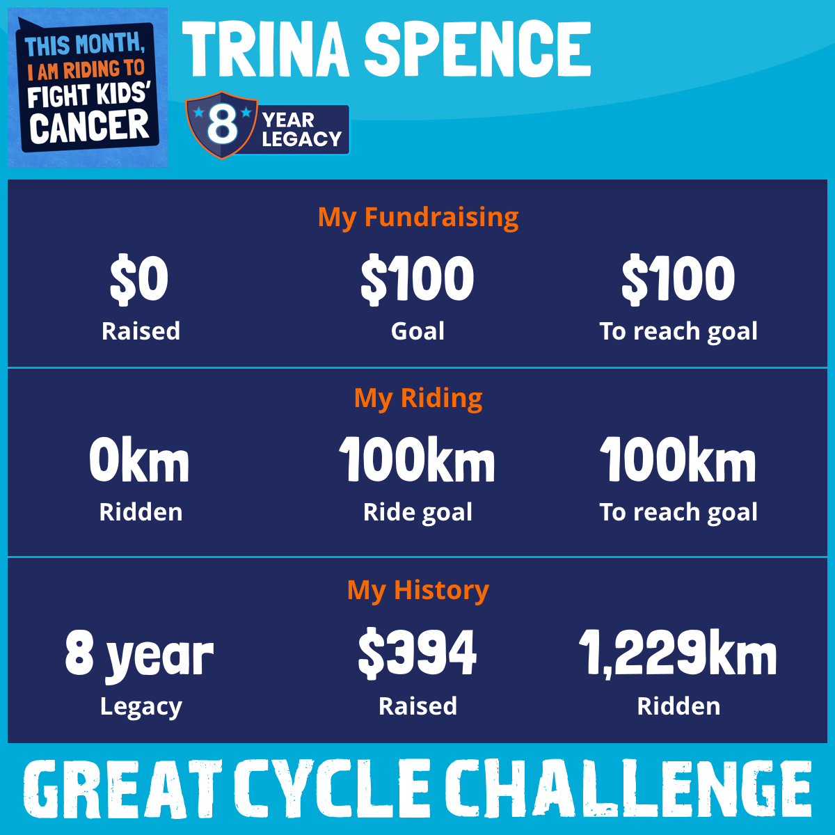 This August, I am taking part in the Great Cycle Challenge to fight kids' cancer!