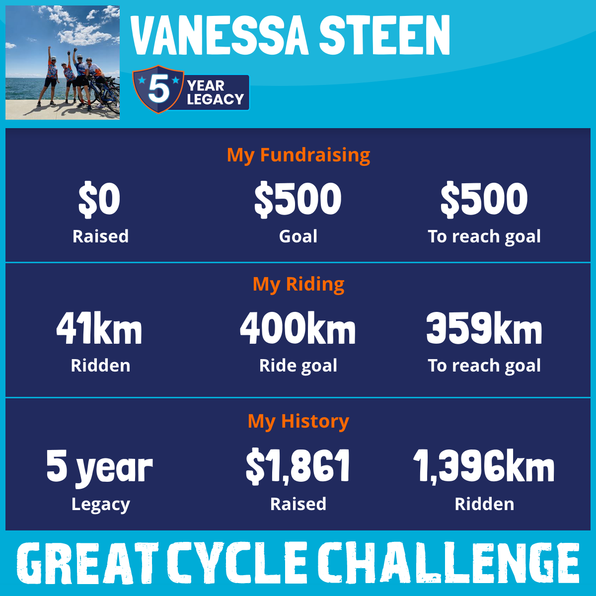 411 km Ridden$329 Raised2025