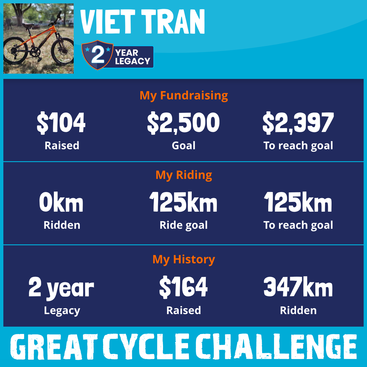 152 km Ridden$104 Raised2025