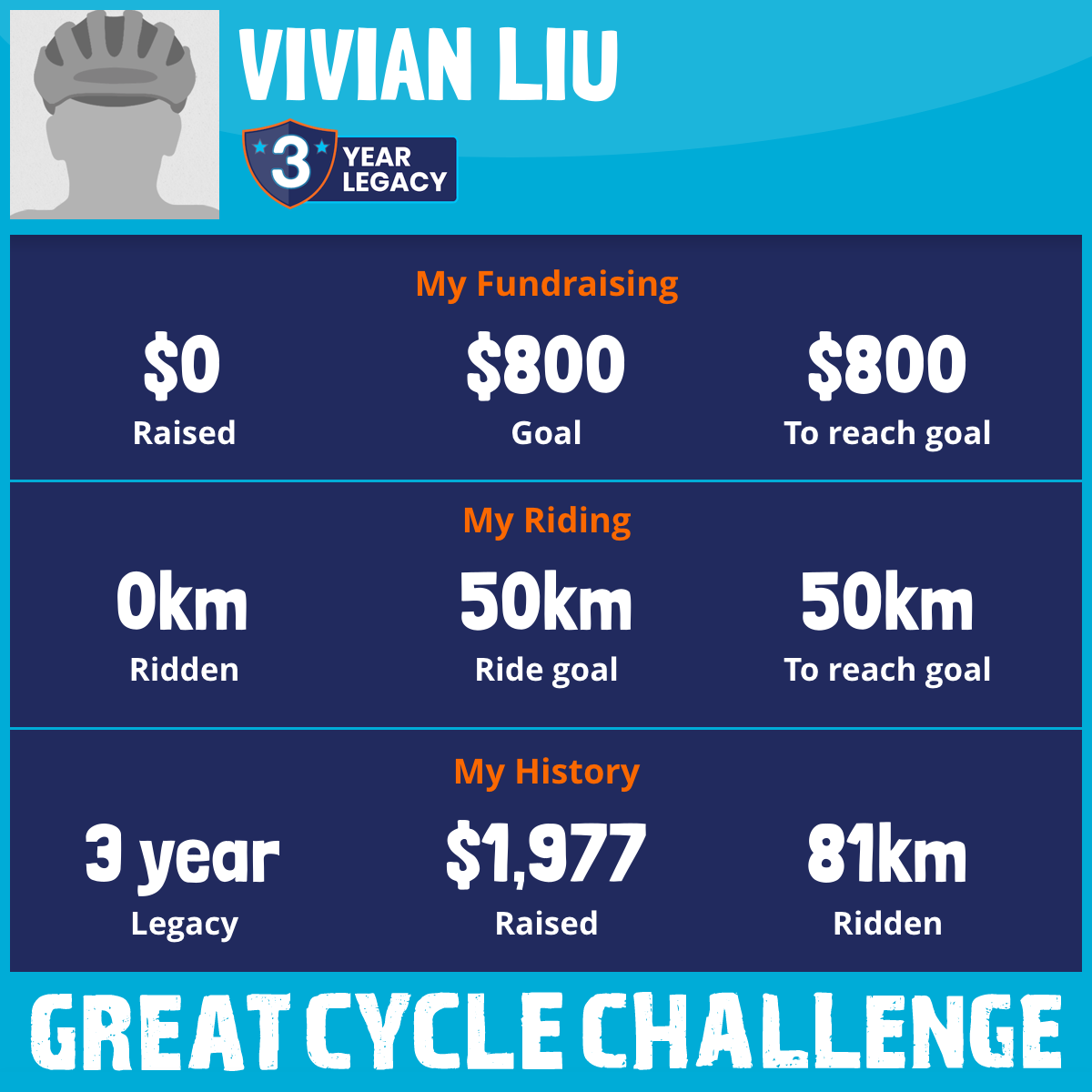 50 km Ridden$1,371 Raised2023