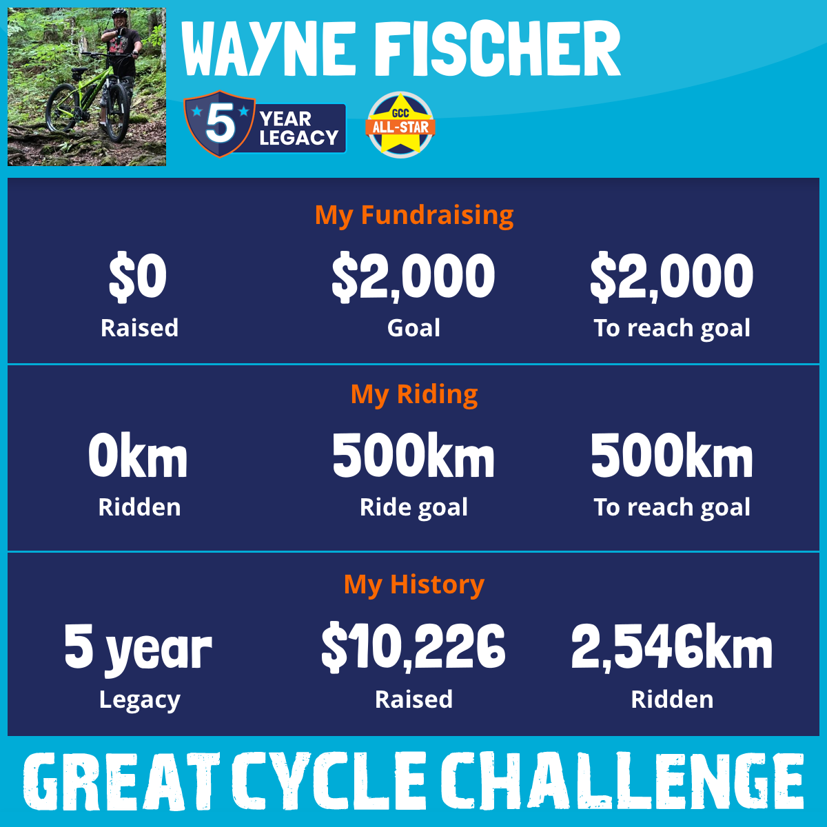 This is the fifth year I am taking part in the Great Cycle Challenge to fight kids' cancer! My goal is 500 km's.