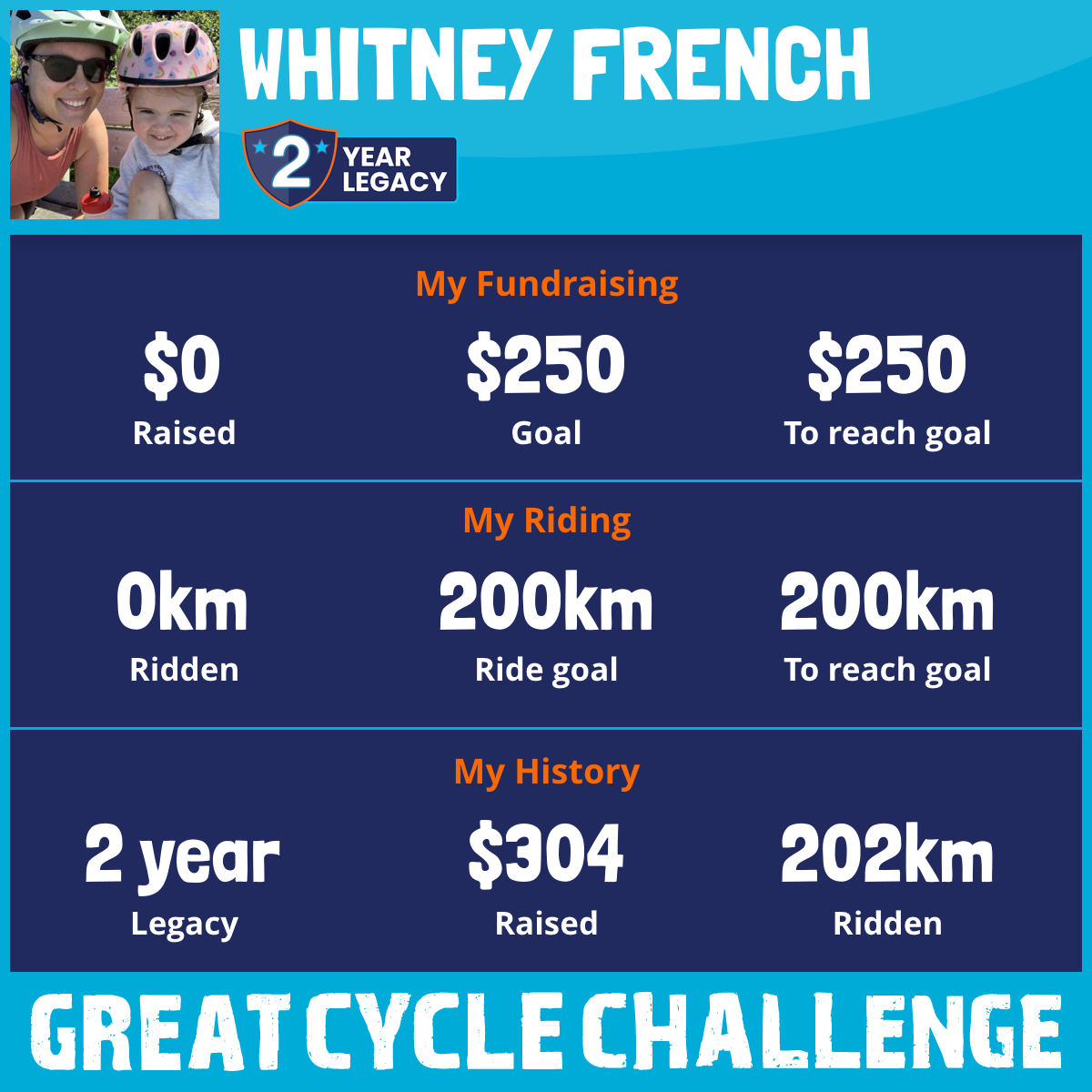 202 km Ridden$304 Raised2024