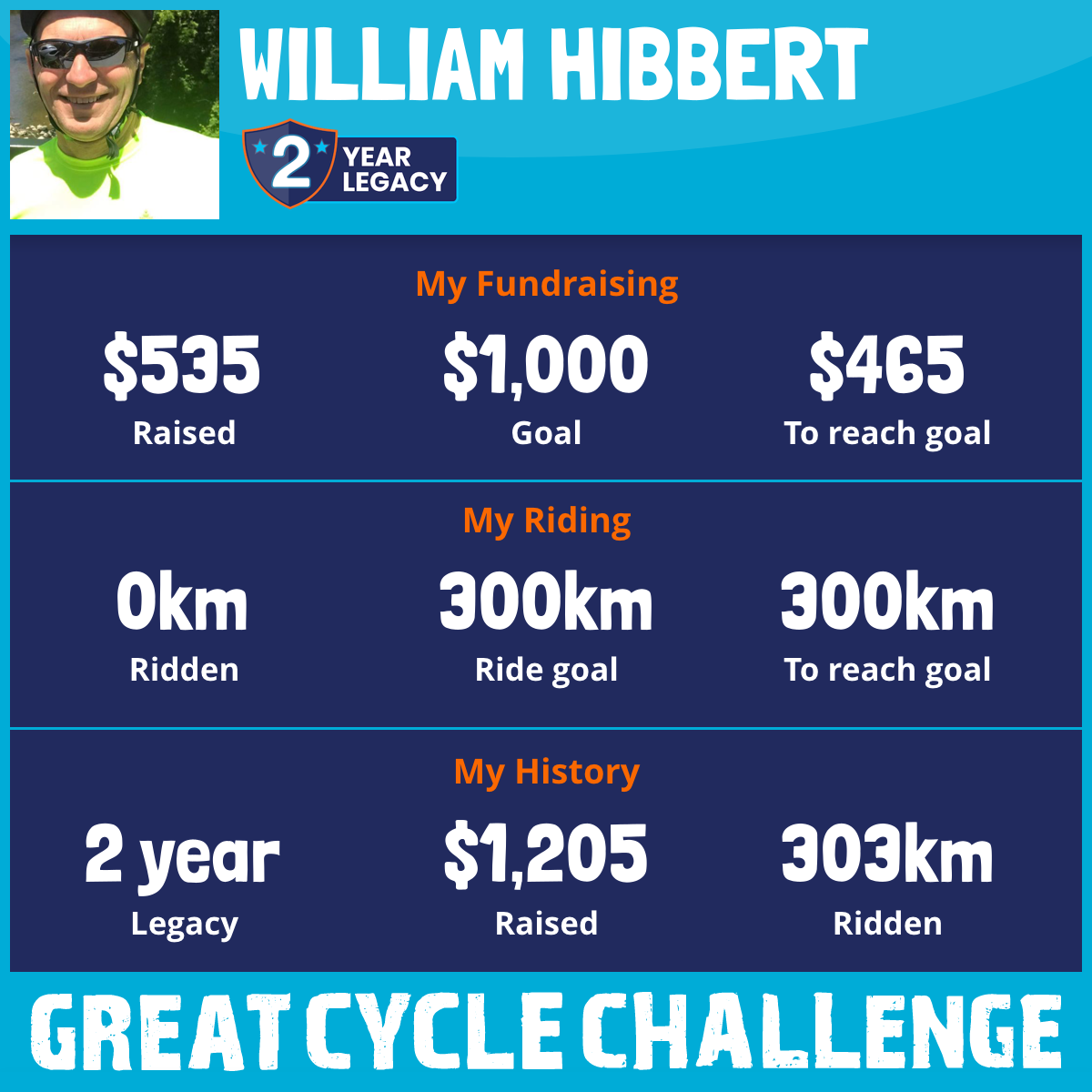 I am riding 300 km in memory of my brother, Steve Hibbert. Please sponsor me and support my challenge to fight kids' cancer and save little lives.