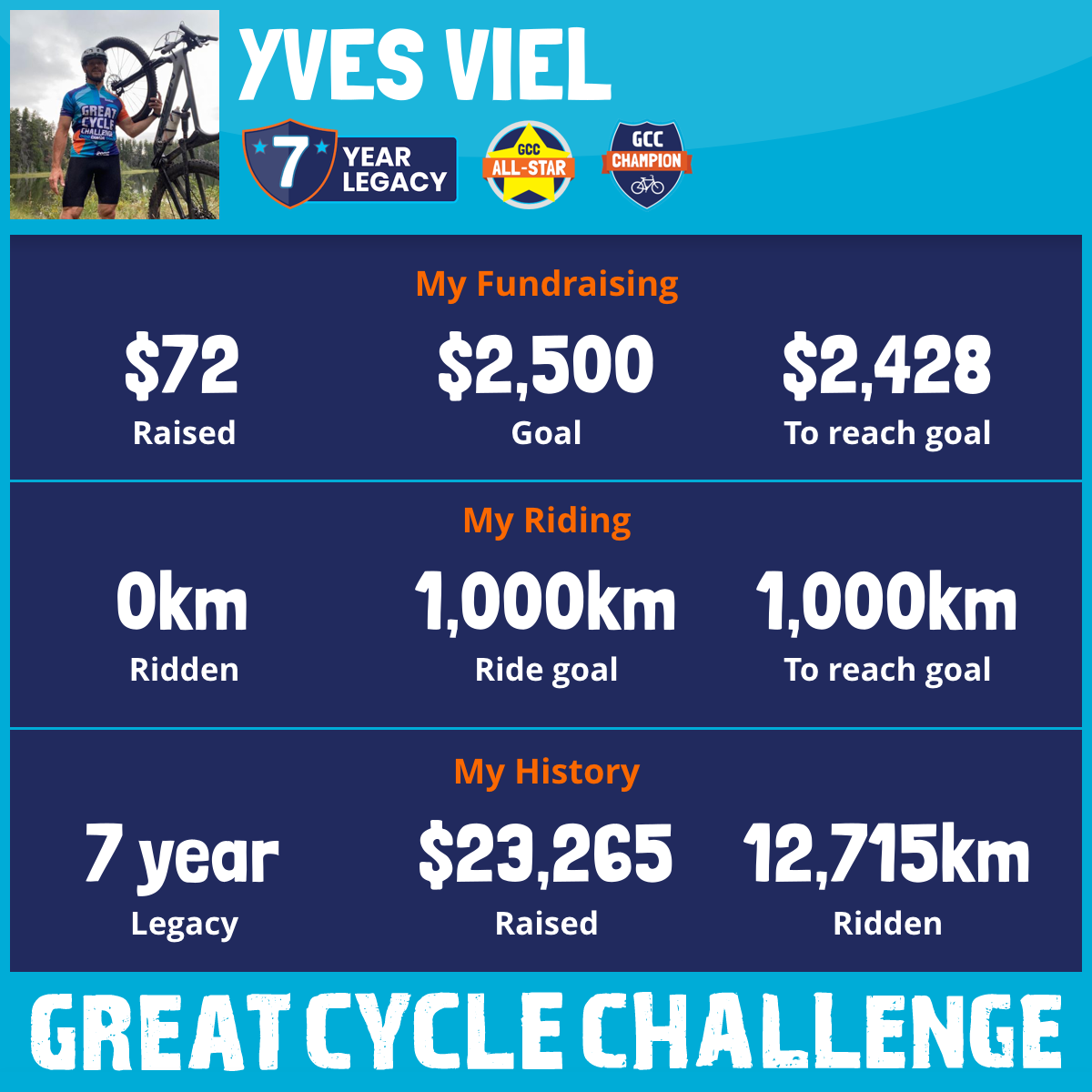 3,425 km Ridden$5,517 Raised2026