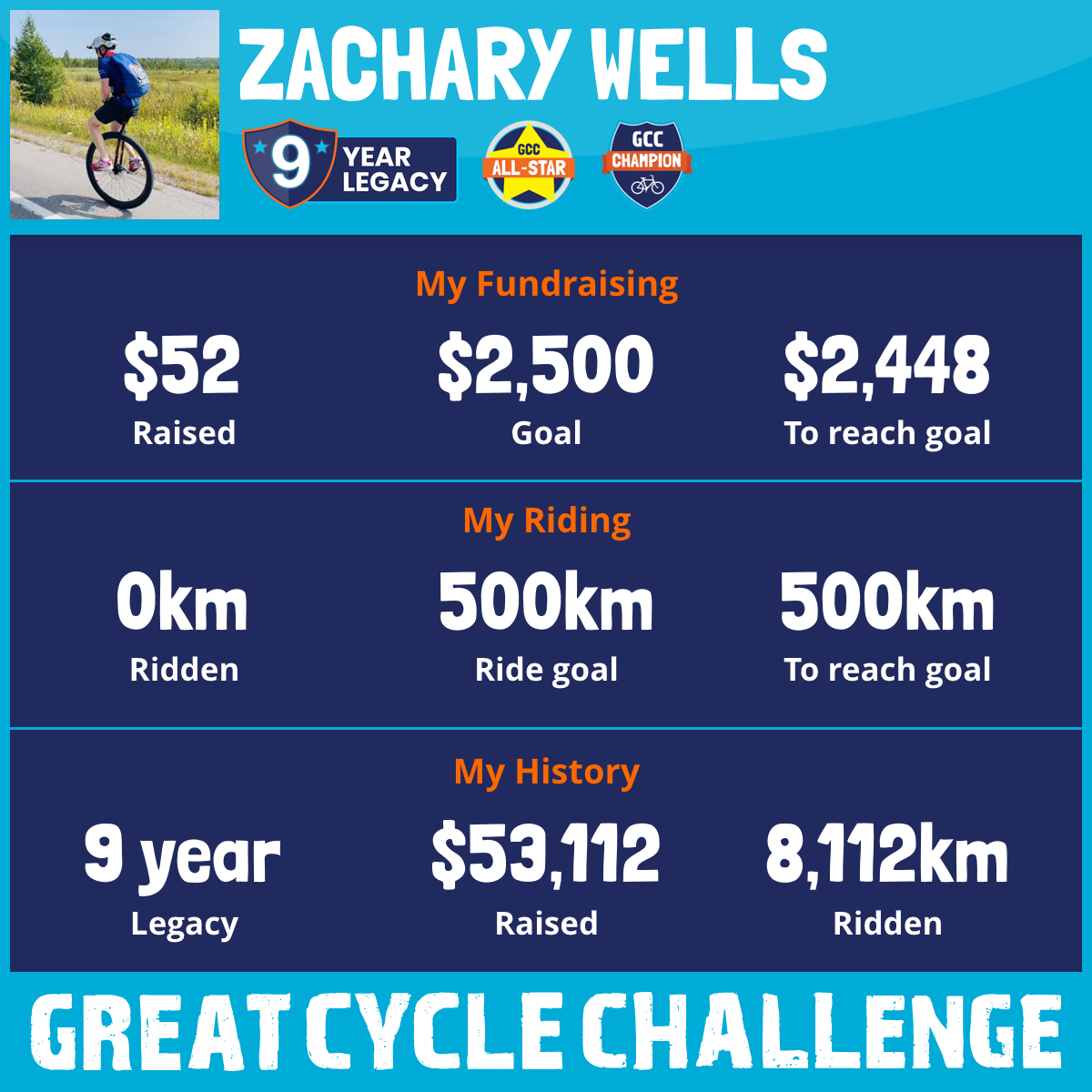1,496 km Ridden$5,262 Raised2025